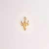 - Croix en laiton doré à l’or fin, joliement travaillée de formes arabesques ornées de pierres swarovski noires avec de subtiles nuances bleu nuit.