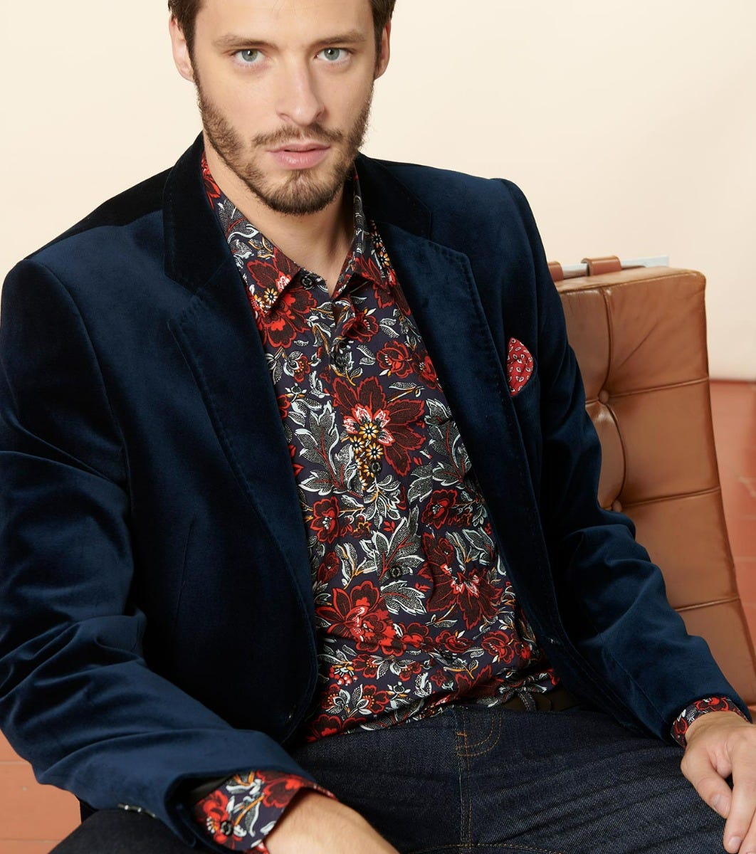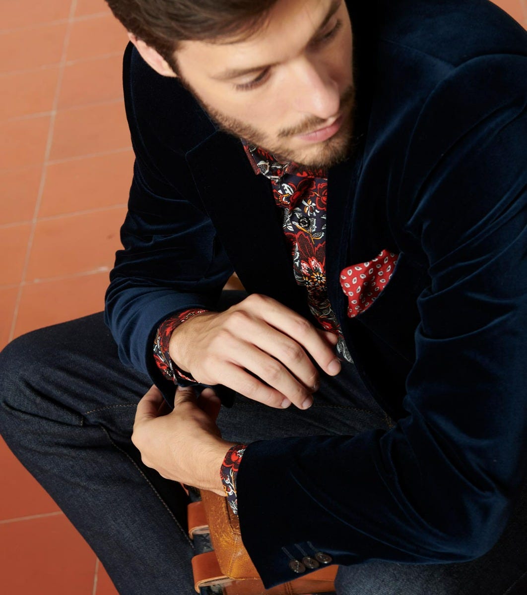 Souleiado Men’s Blue Dandy “velours” Jacket | Bleu Nuit