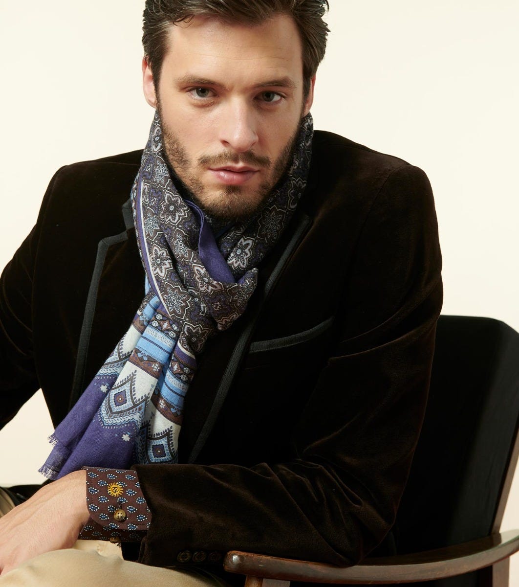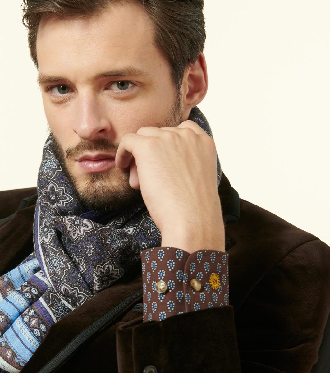 Souleiado Men’s Brown & Blue Precieux Shawl | Marron & Bleu