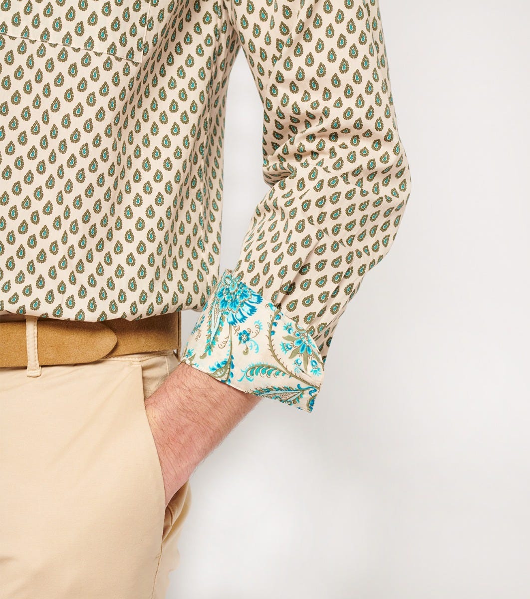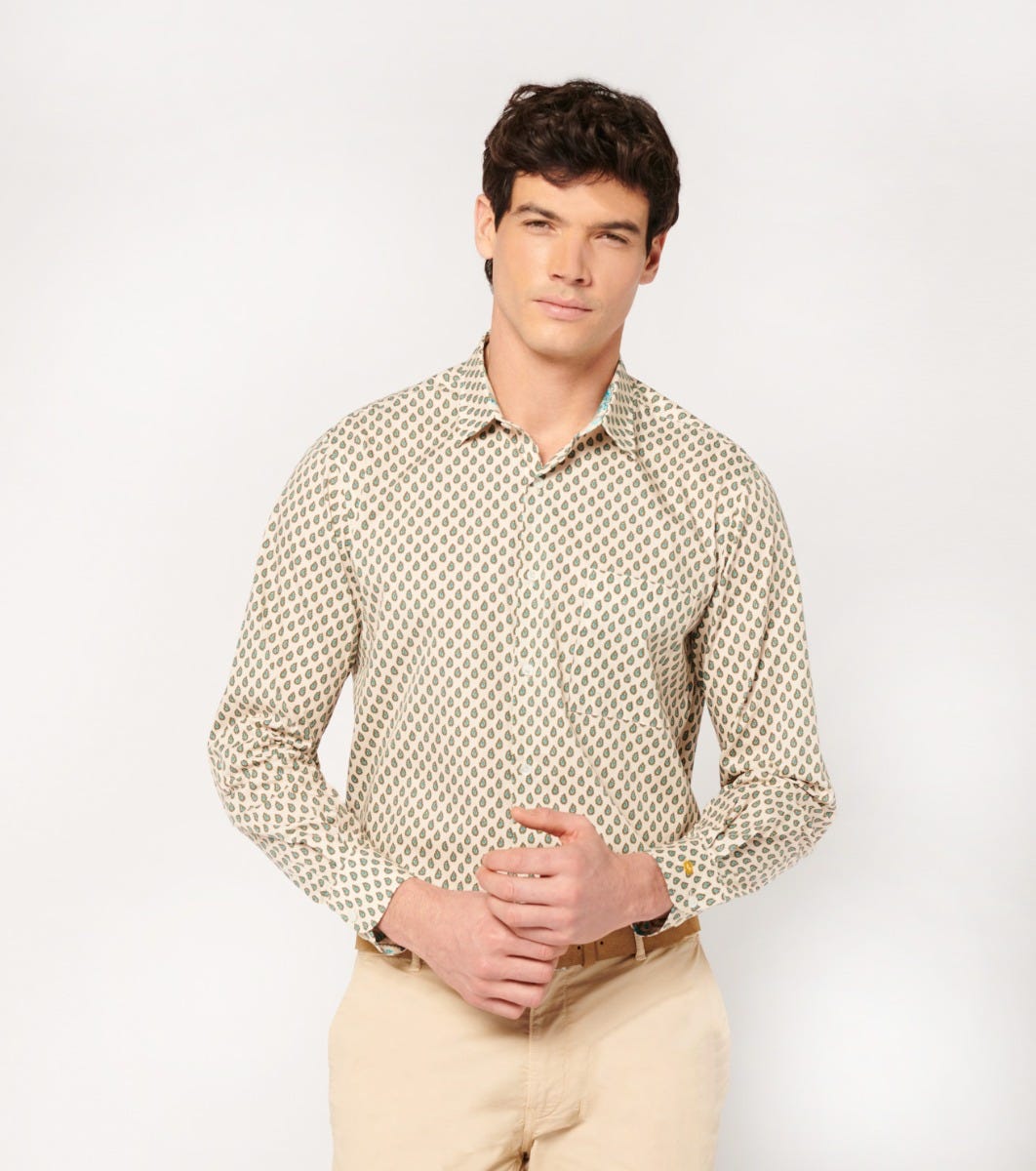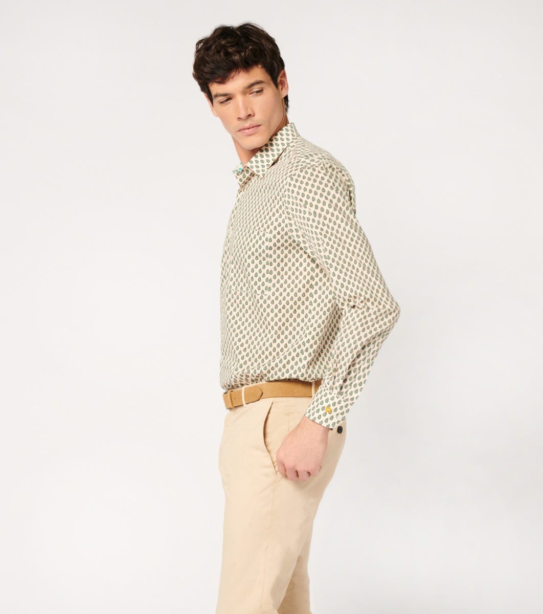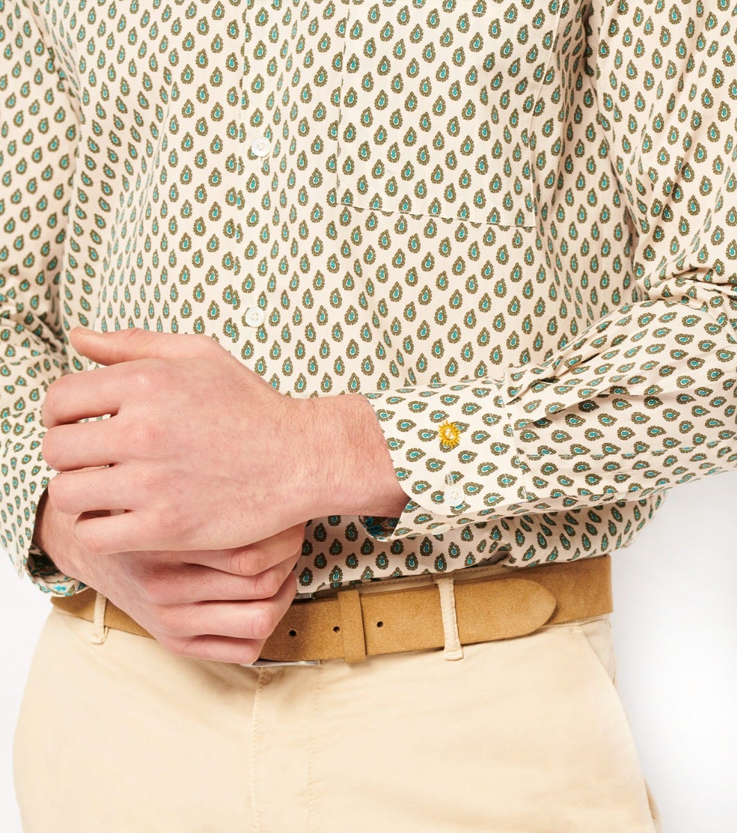 Souleiado Men’s Ecru And Turquoise Frederi Droite “paisley Géo” Shirt | Écru Et Turquoise