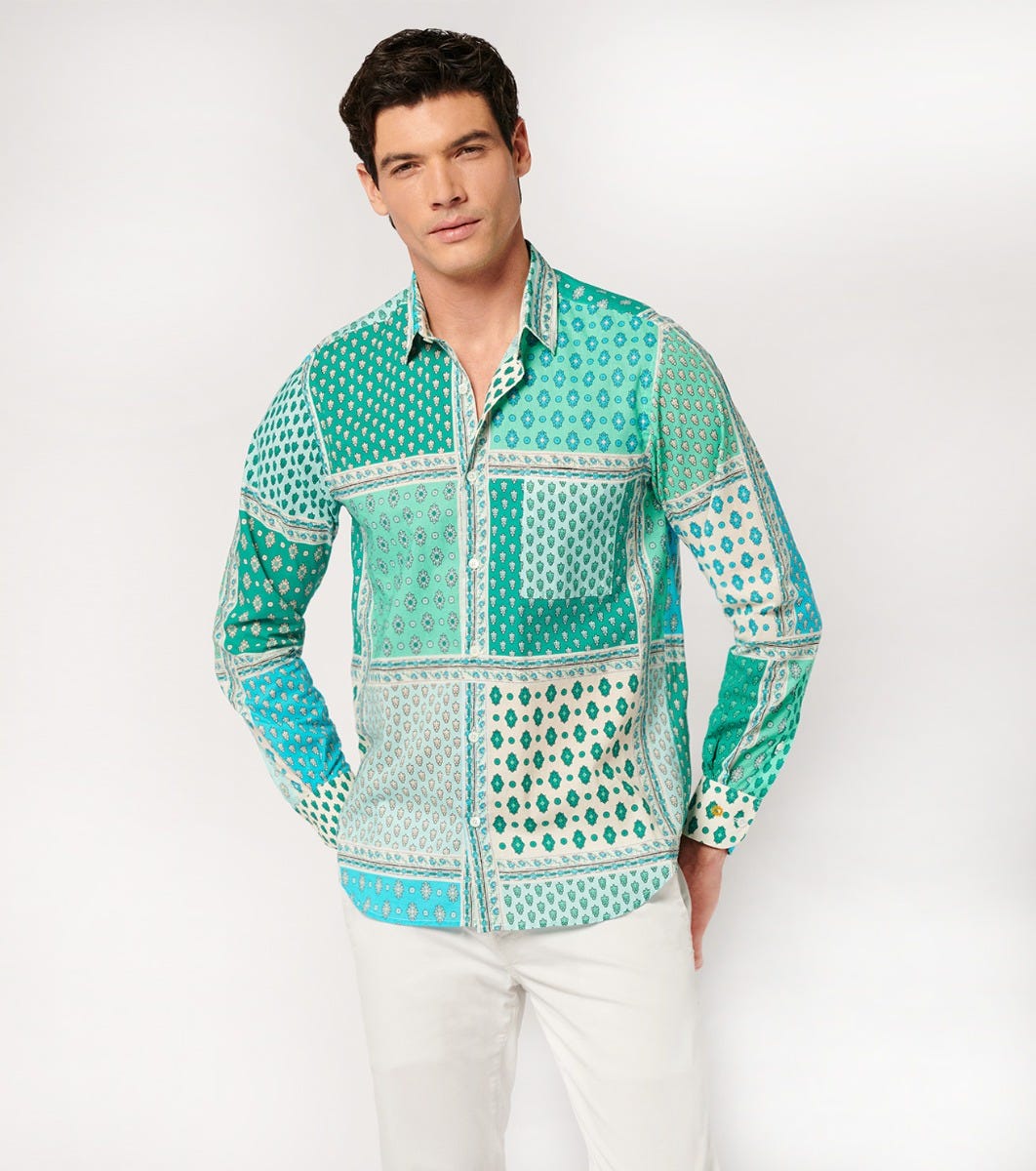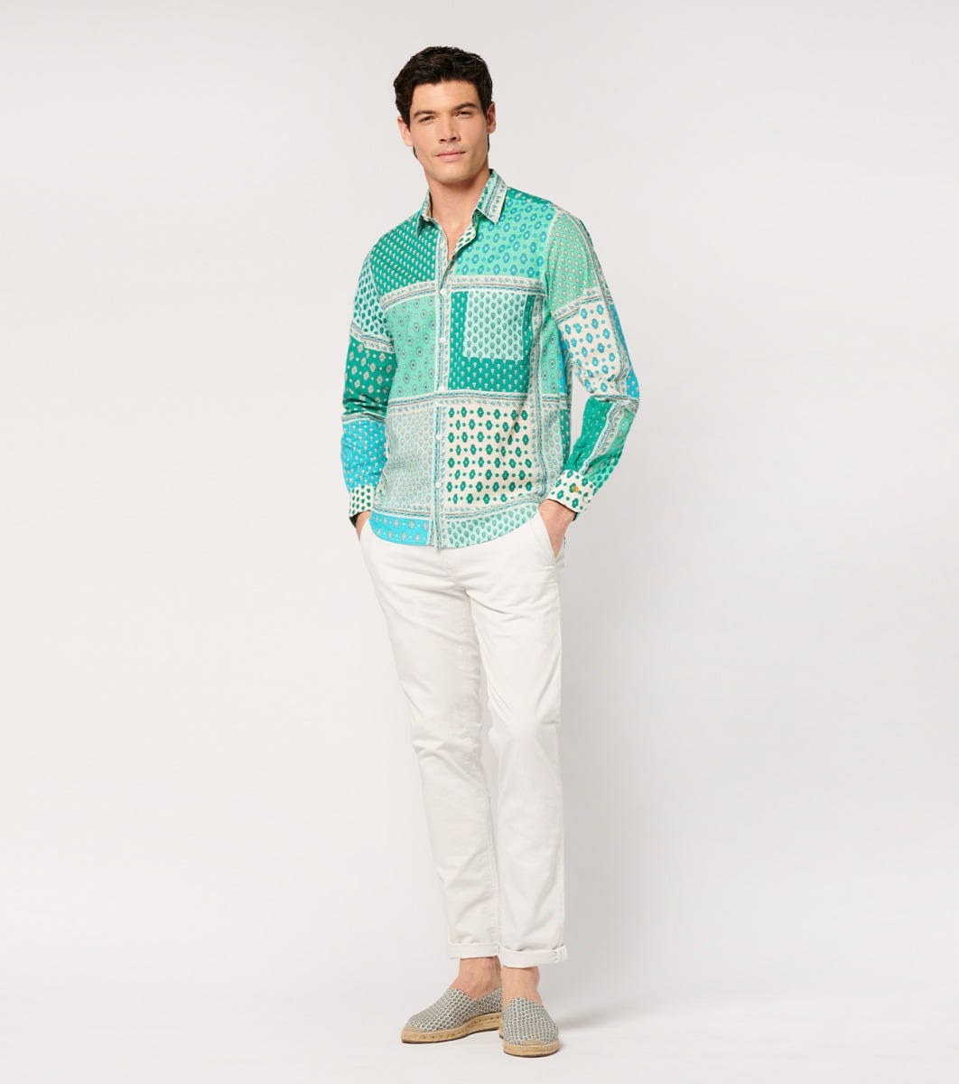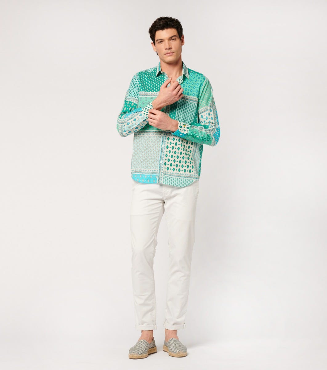 - In cotton batiste, printed with our iconic “Italienne” motif in turquoise ecru.