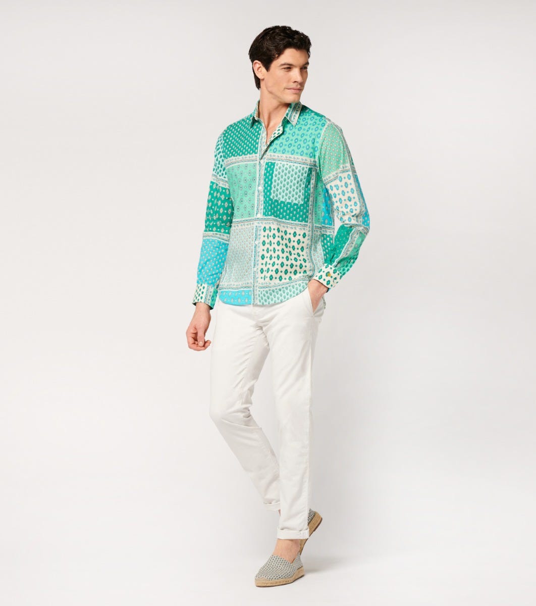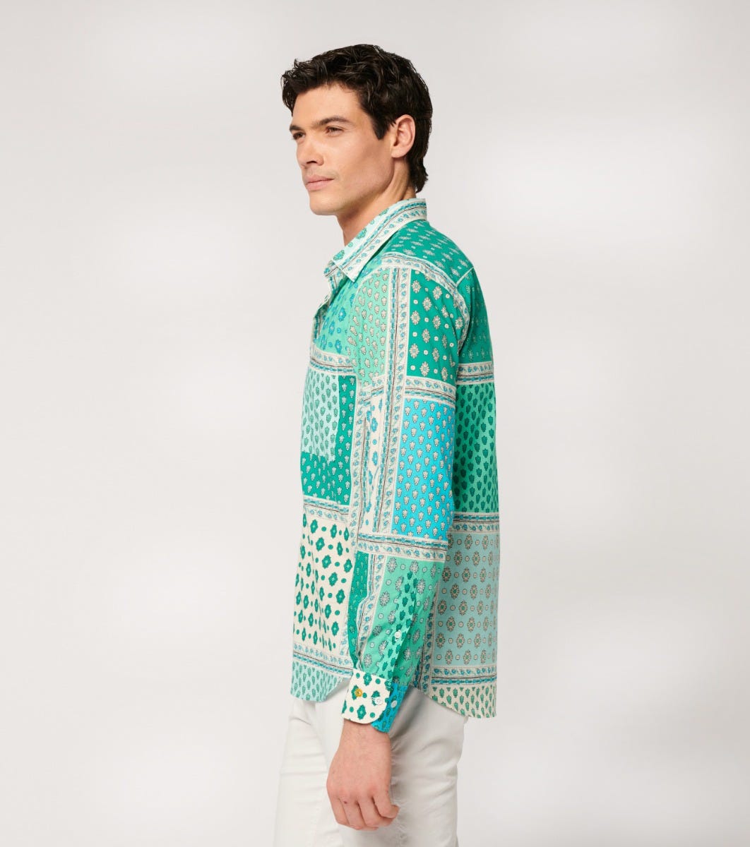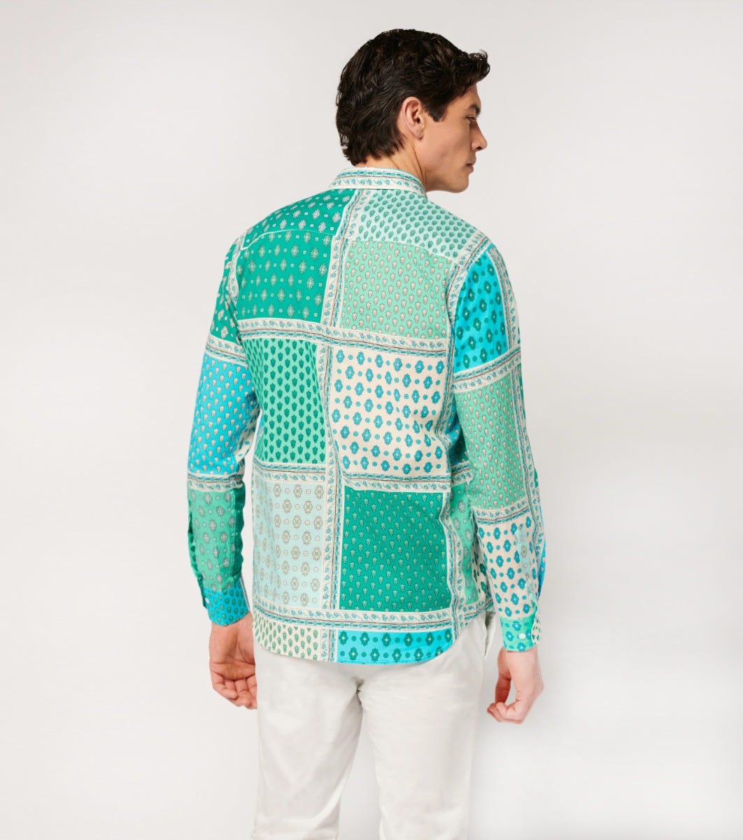 - In cotton batiste, printed with our iconic “Italienne” motif in turquoise ecru.