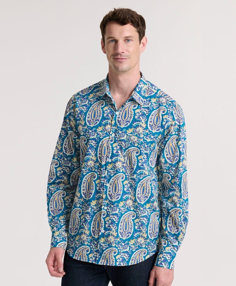 Souleiado Men’s Emerald And Yellow Frederi Droite “max” Shirt | Emeraude Et Jaune