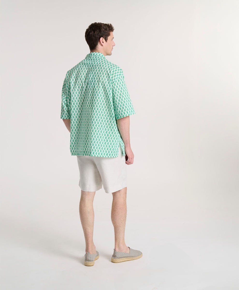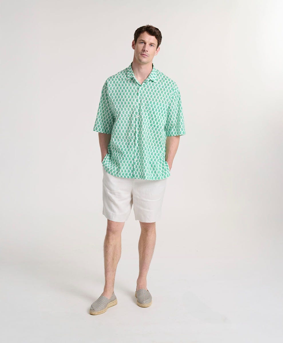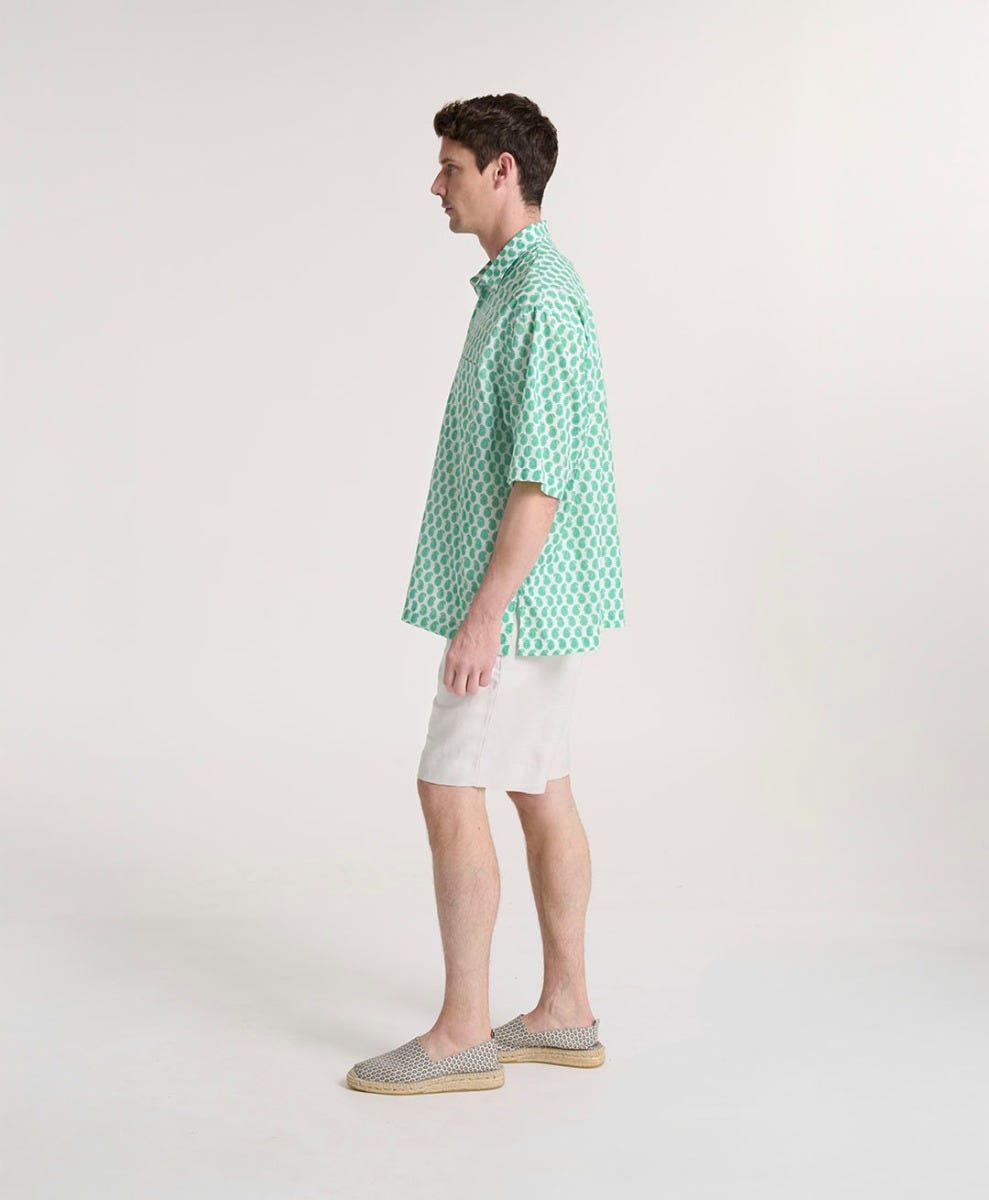 - In slub cotton, printed with our “Paisley Foliage” pattern in mint color.