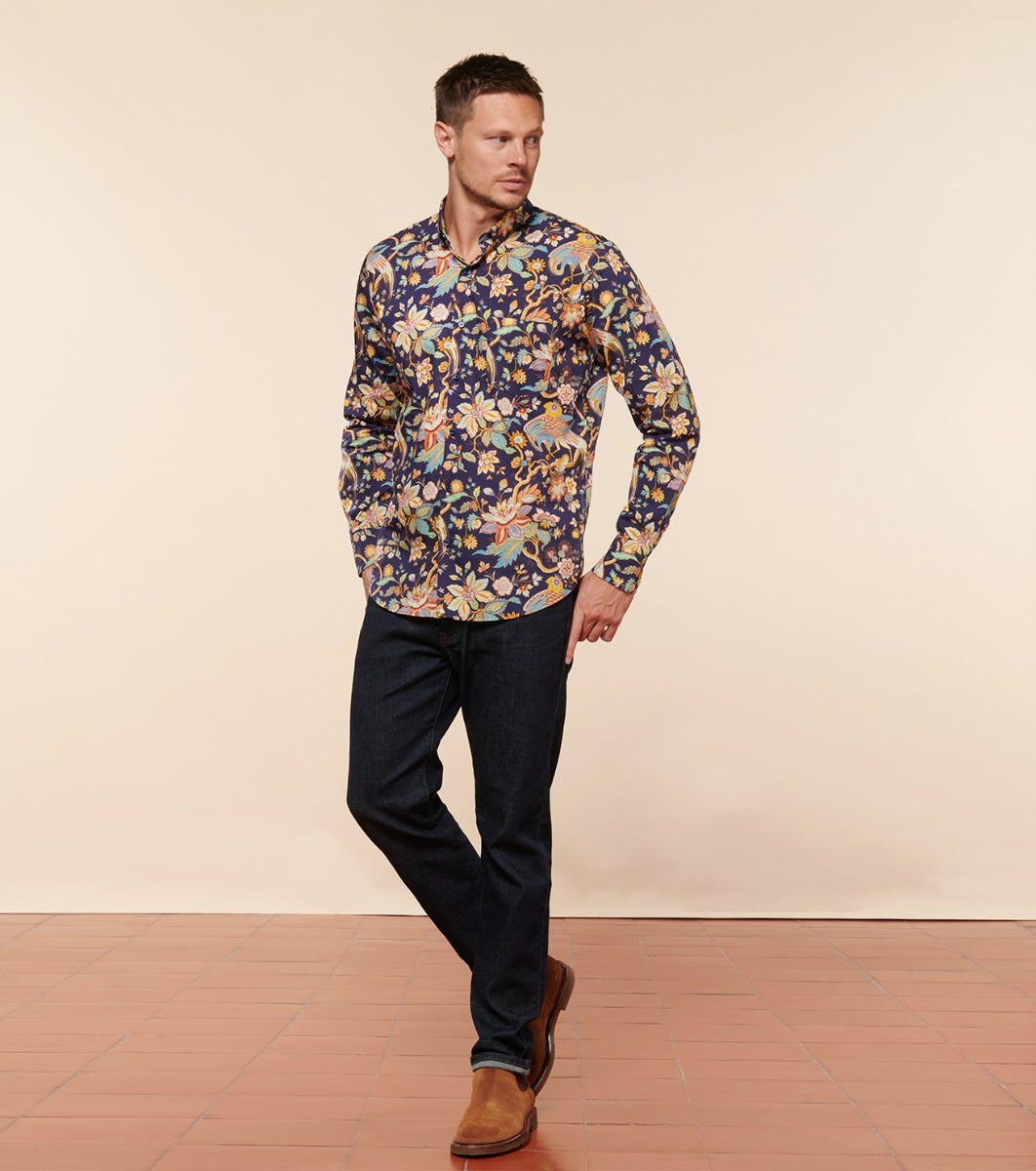 - Milo, our slim-fitting shirt with American collar and heart patch pocket. Closer to the body and slightly fitted at the waist, thanks to two back darts, for a silhouette-shaping fit. A casual-chic button-down collar: the buttons holding back the points make this collar special.