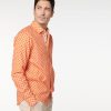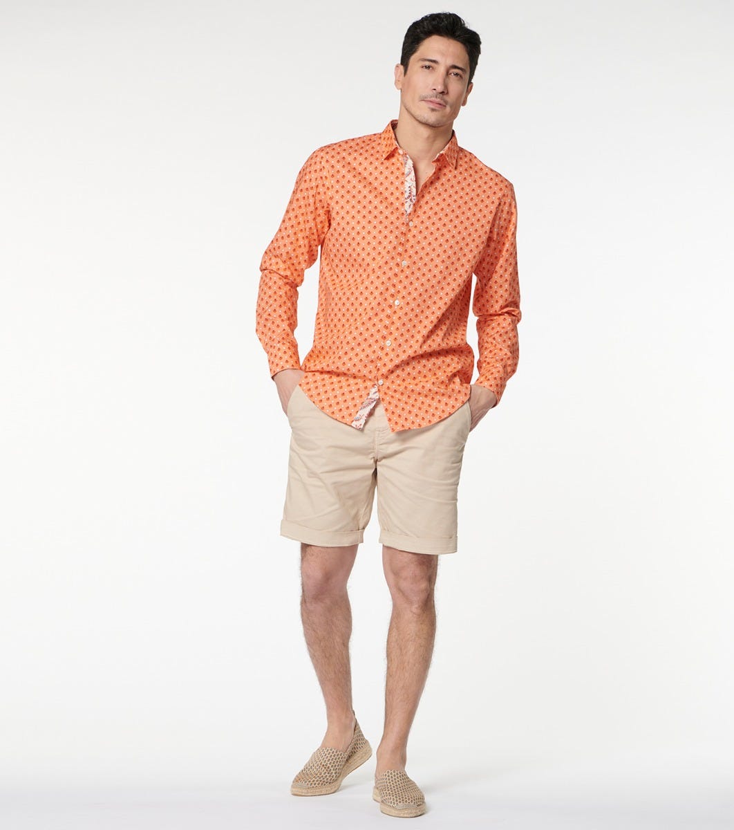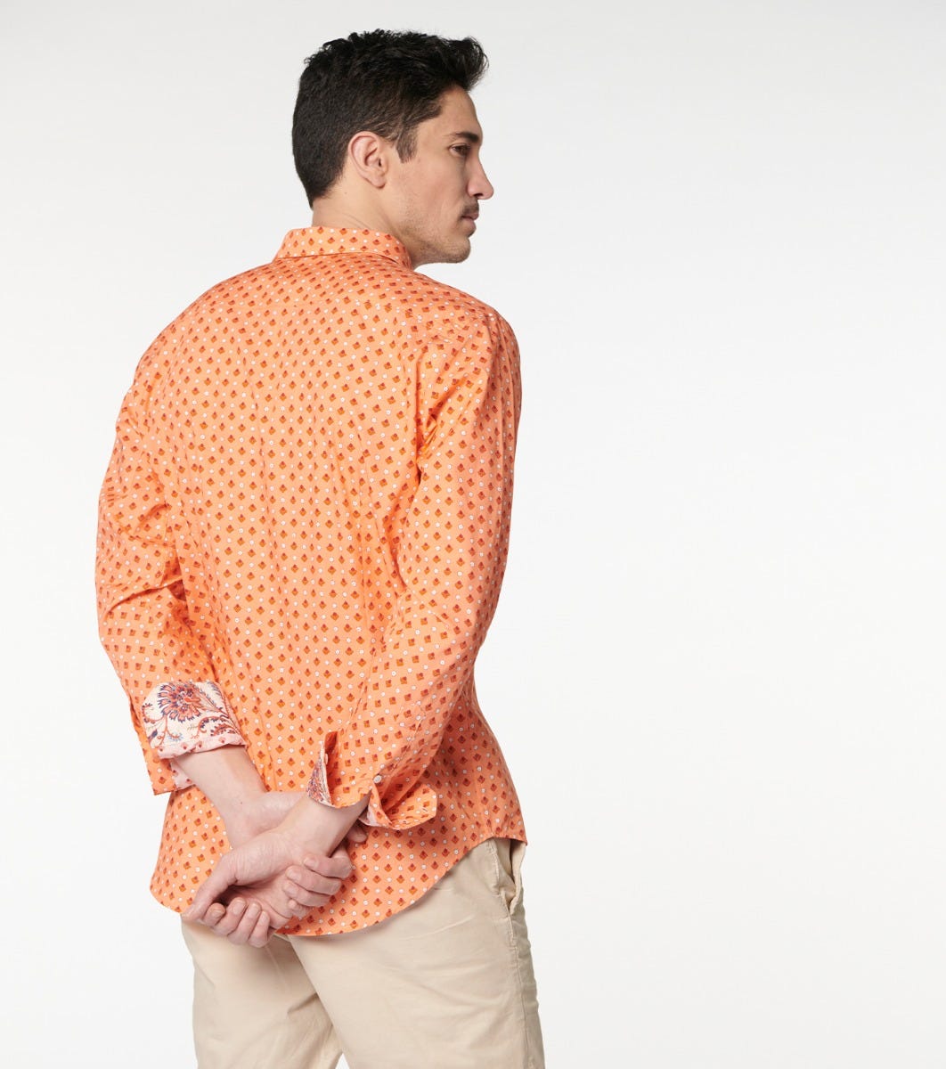 Souleiado Men’s Orange Provencal Pattern Slim Shirt | Orange