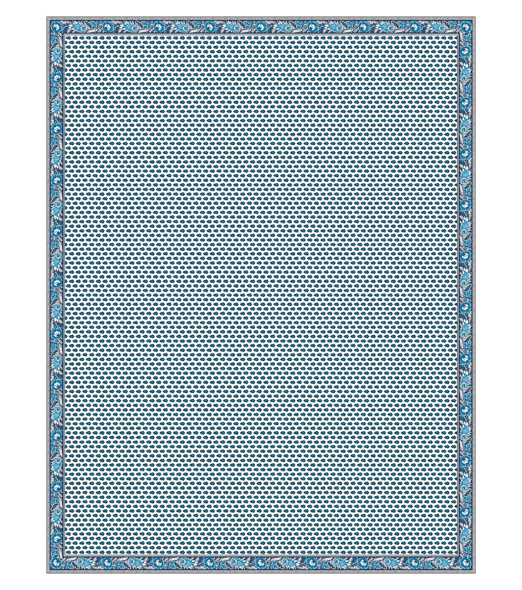- En voile de coton imprimé placé avec notre motif iconique “La Mouche” coloris blanc bleu