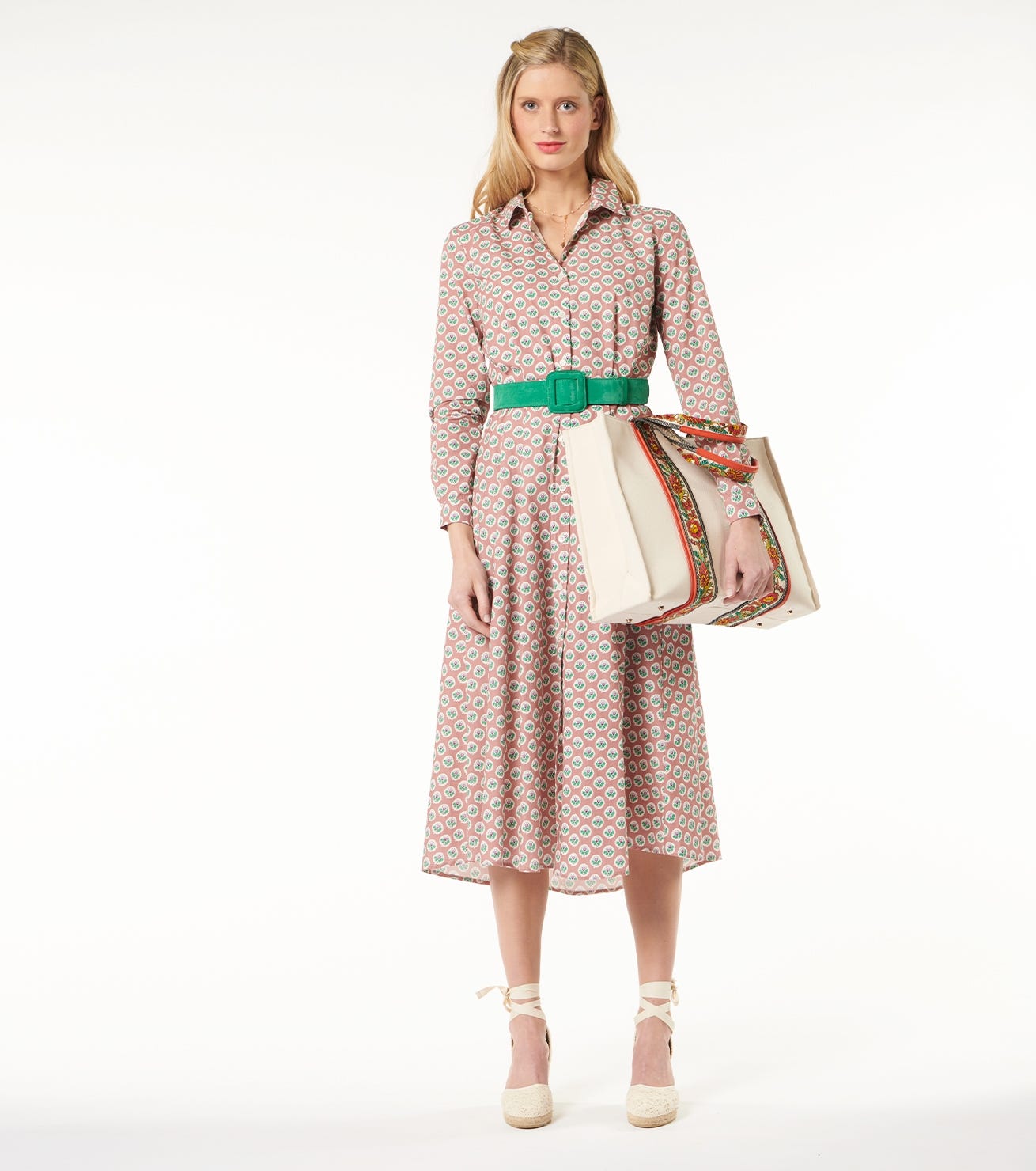 - A flared shirt dress in Fleur d’Arles printed poplin (100% cotton)
