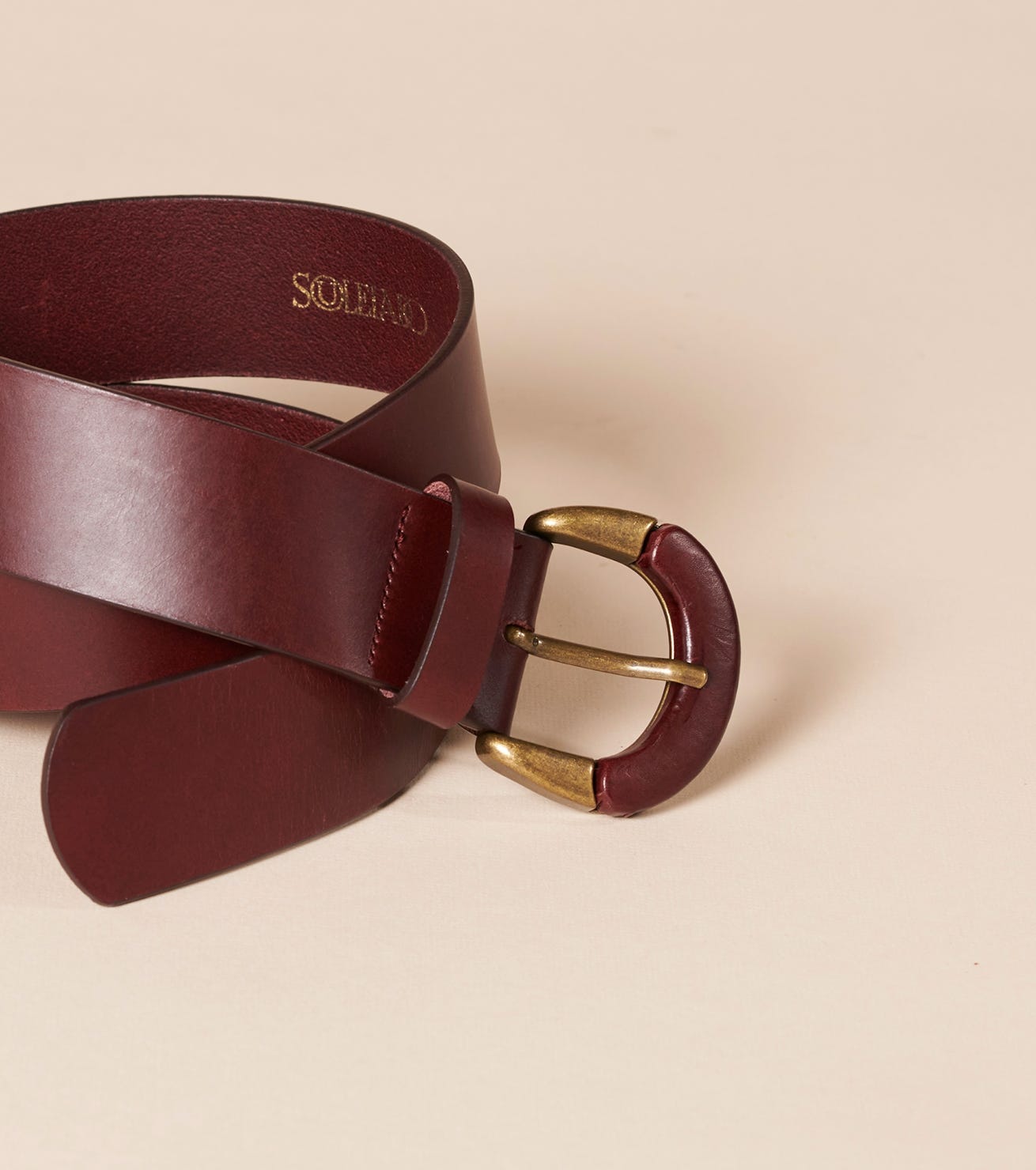 - Belt in burgundy vegetable leather