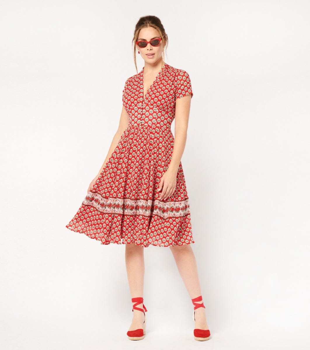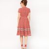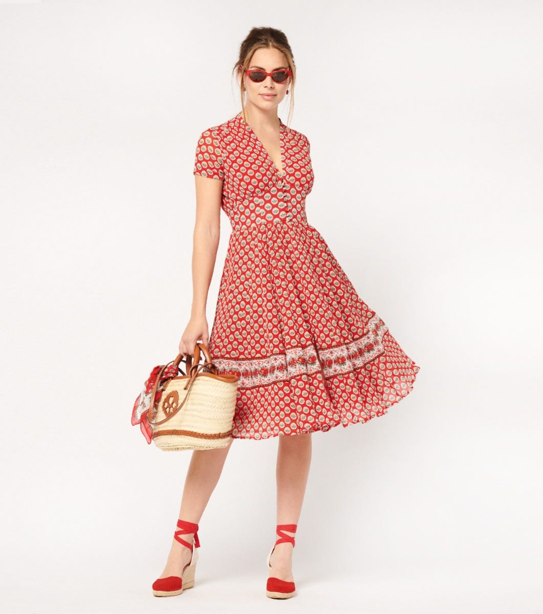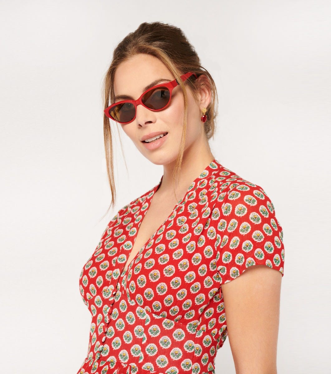 - Marilyn, printed cotton-silk crepe dress, cinched at the waist with a corselet cutout and a smock effect at the back for an elegant silhouette.