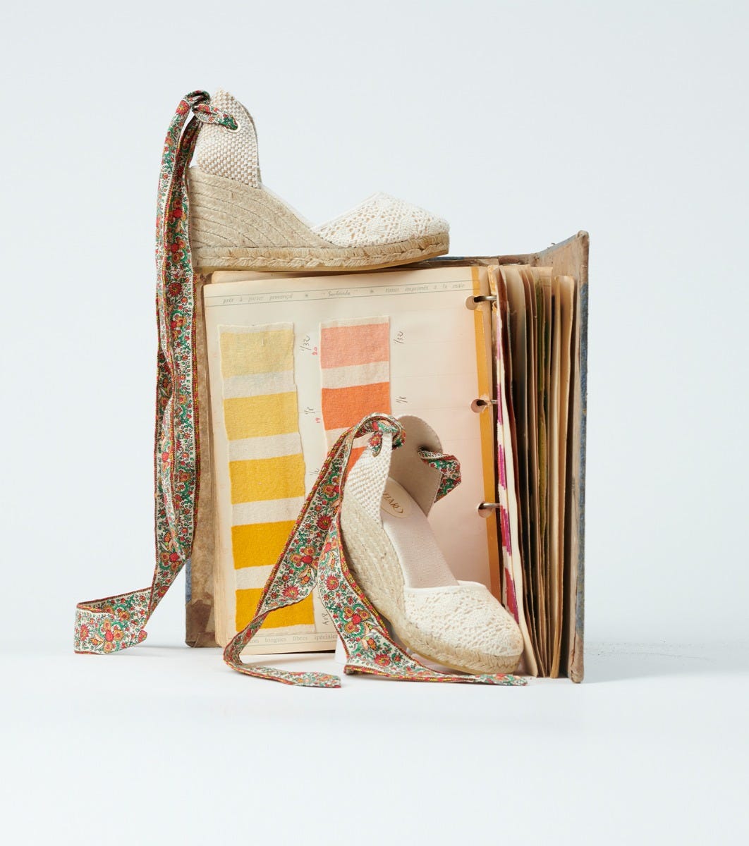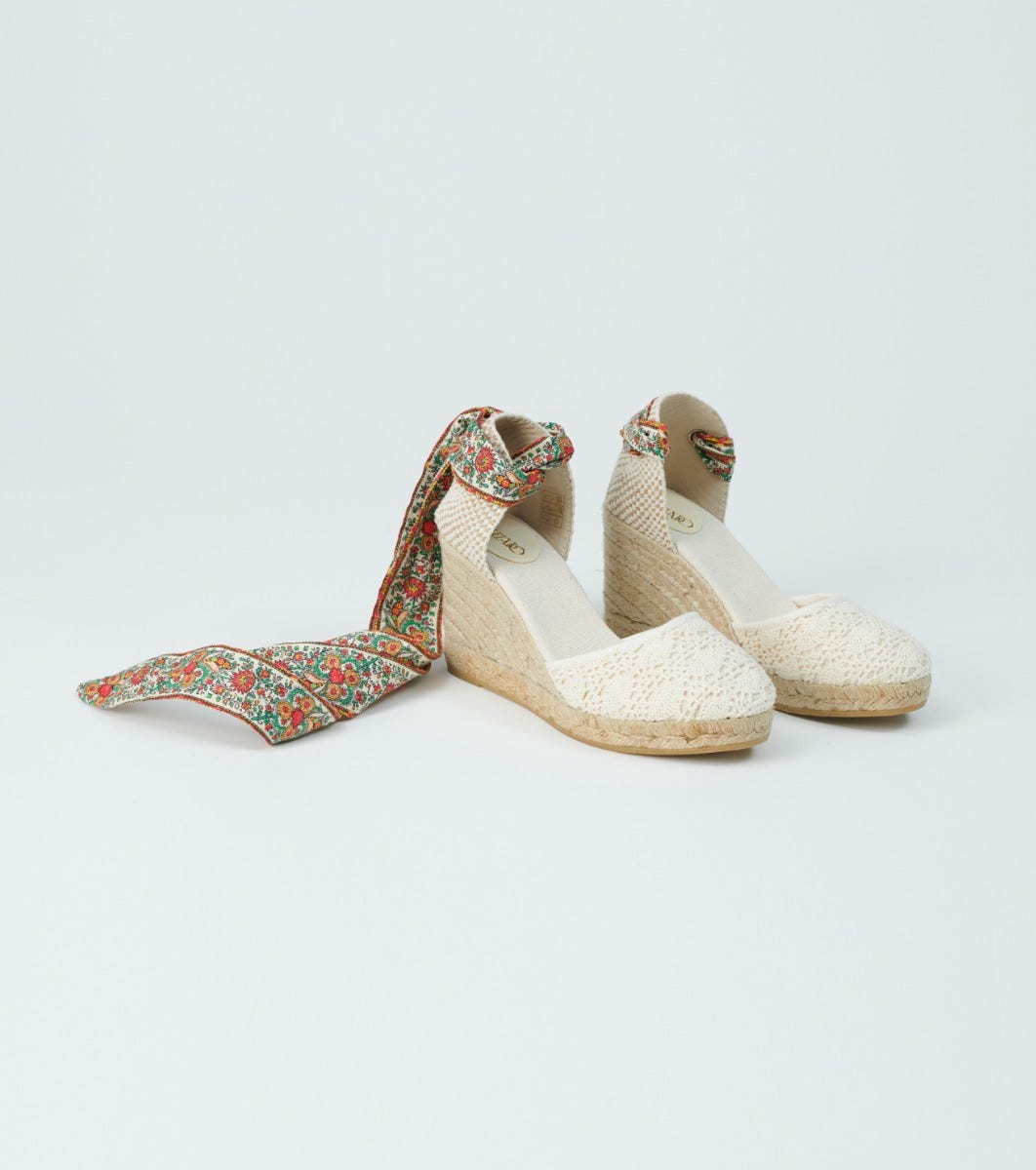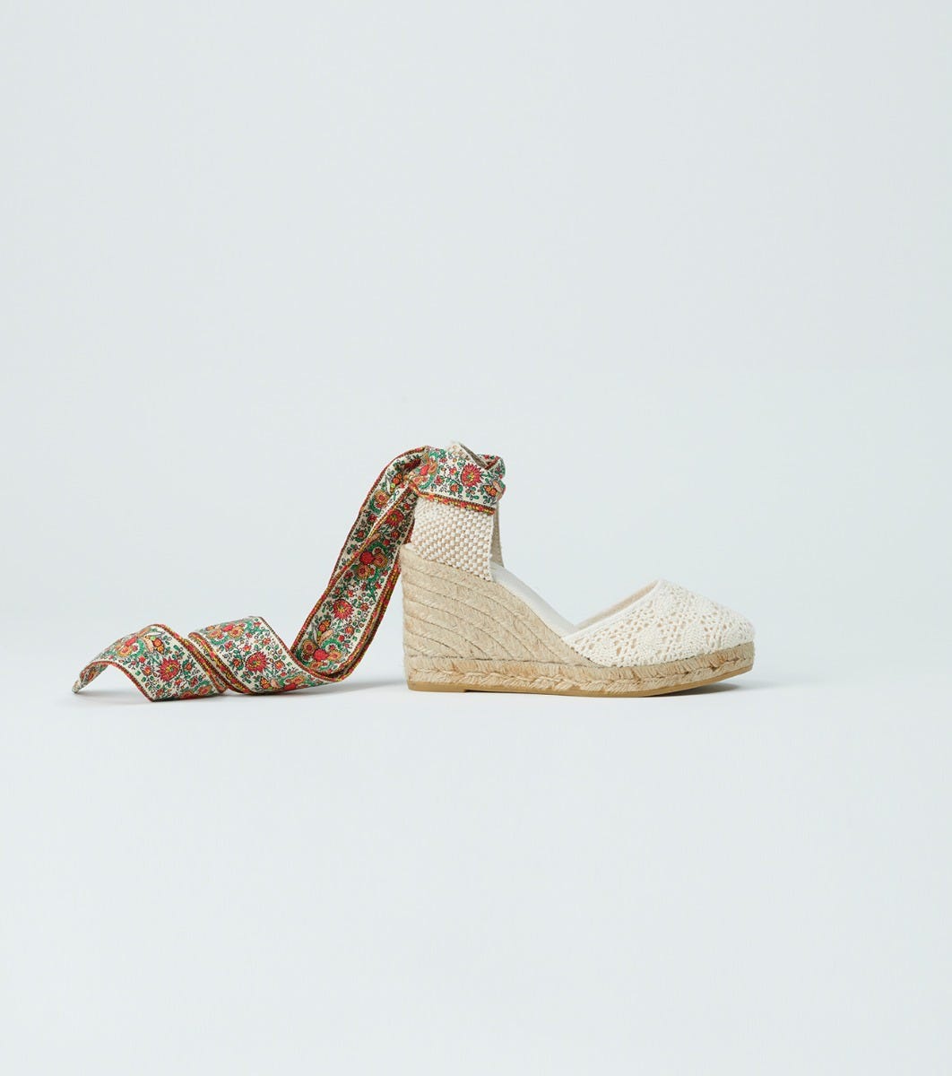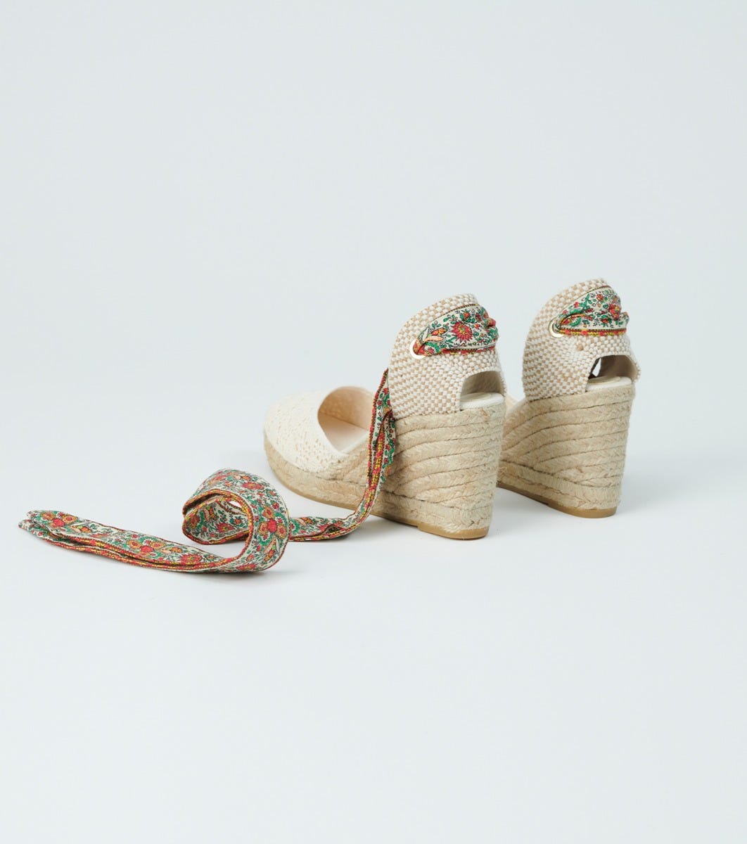 - The espadrille is also available with a plain ecru cotton strap