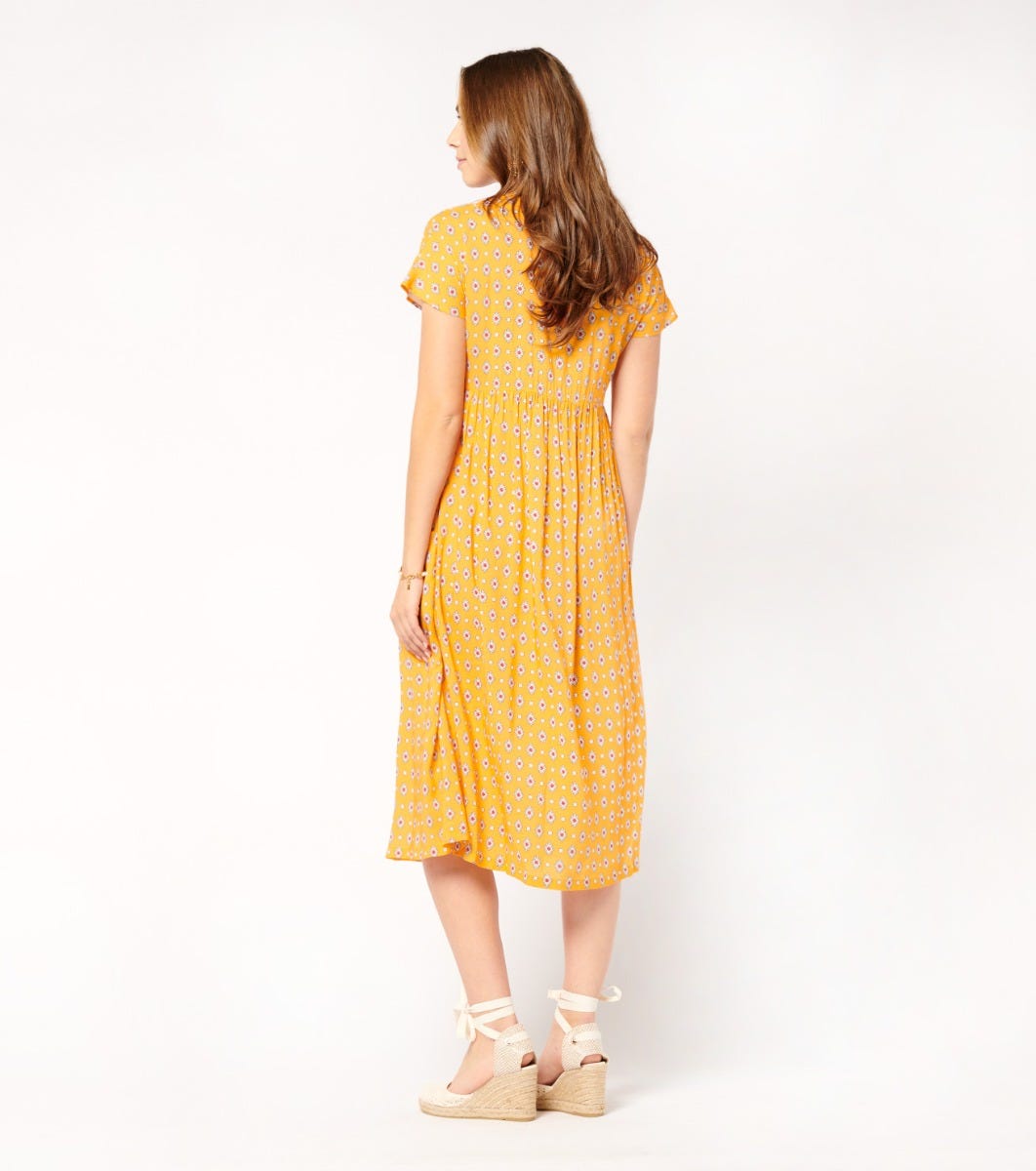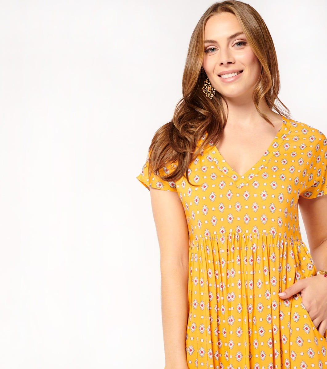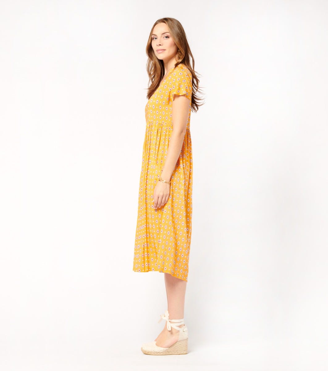 - Our iconic Jacqueline dress! A timeless cut with the pattern of the season. Its open neckline and cut-out ruffled waist brings her all her femininity. The fluidity of its material ensures a beautiful fall.