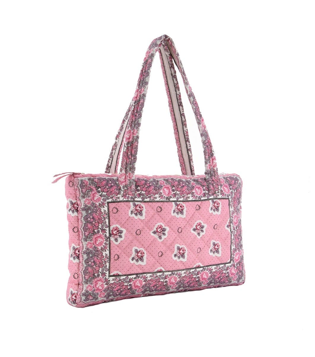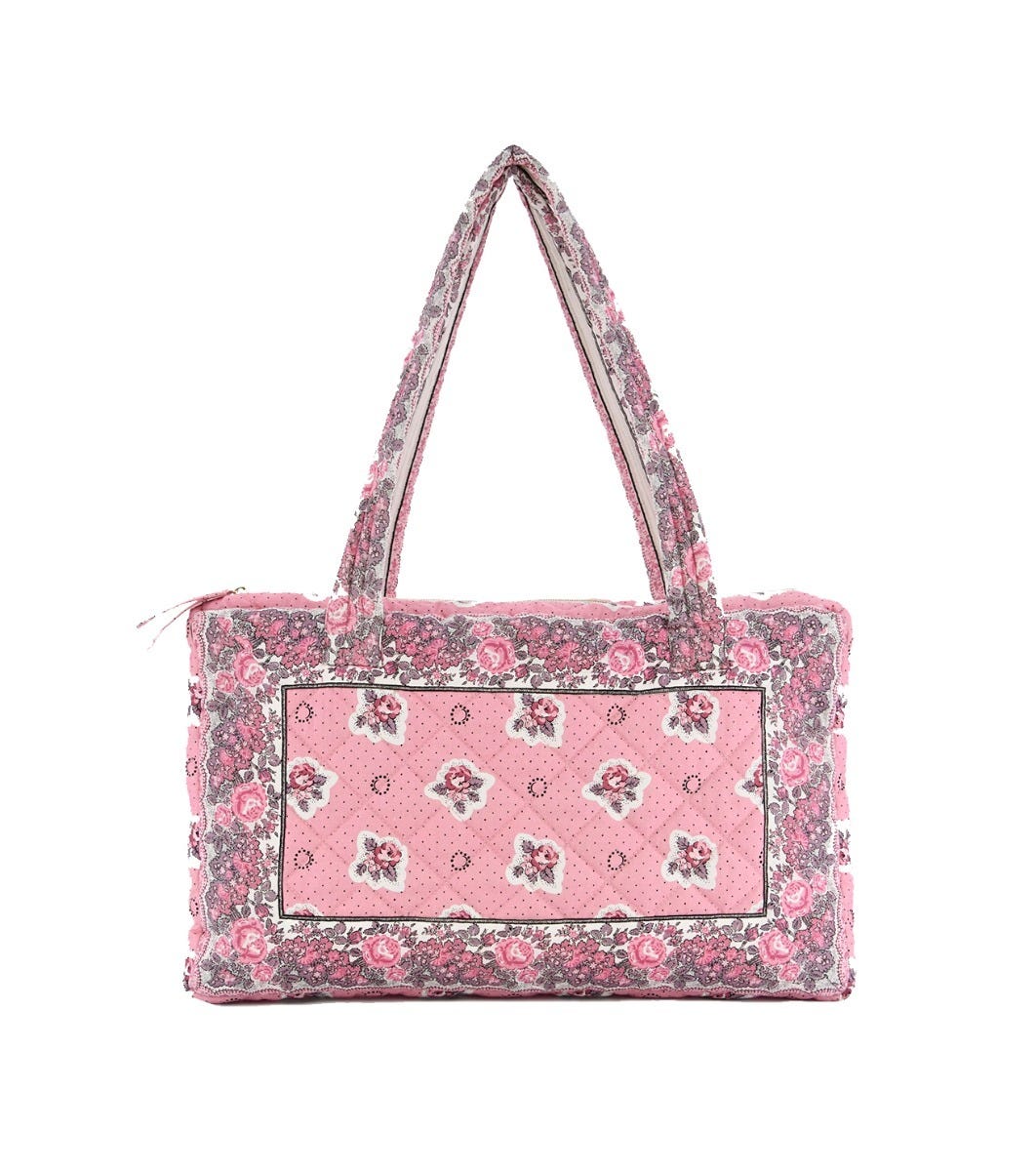 - ADIANA quilted bag in pink “printemps” pattern printed cotton with La Petite Rose braid