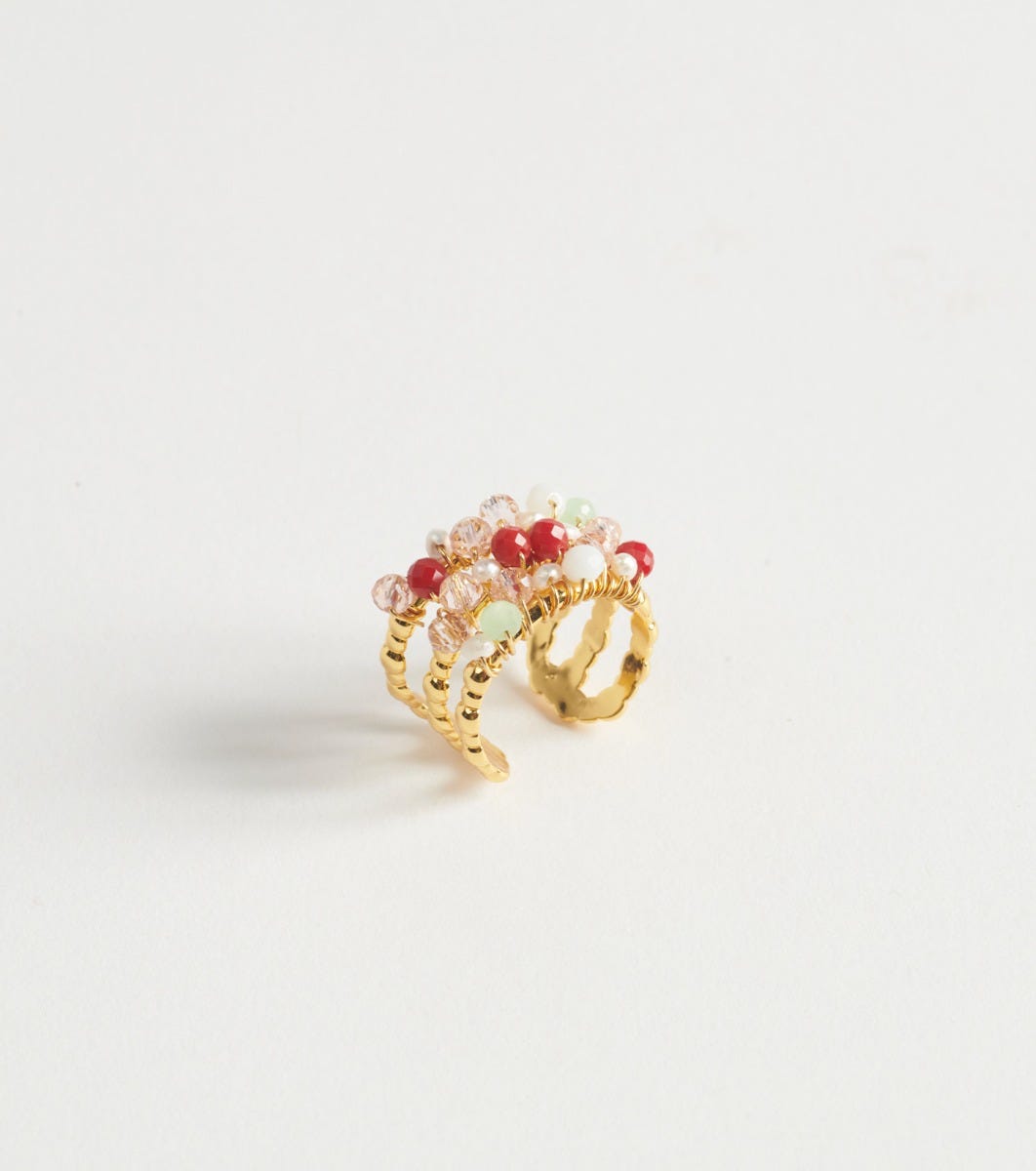 - Multi-row open ring with delicate pearls.