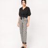 - Adopt a look that’s both timeless and daring with these capri pants in black and white overprint gingham. Perfect for a chic look, they feature a straight, structured cut. A must-have for any outfit.