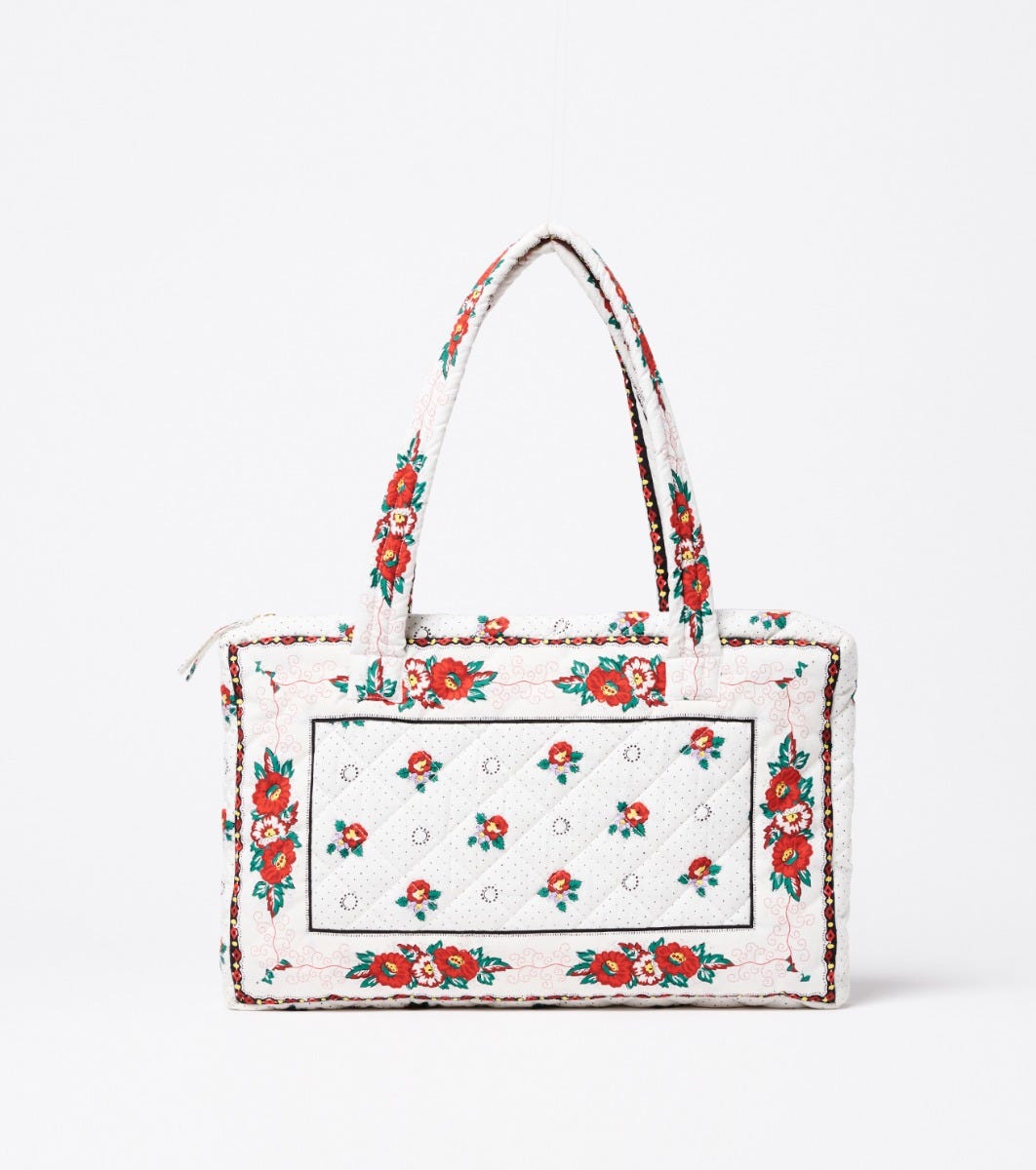 - ADIANA quilted bag in white printed cotton with La Petite Rose braid