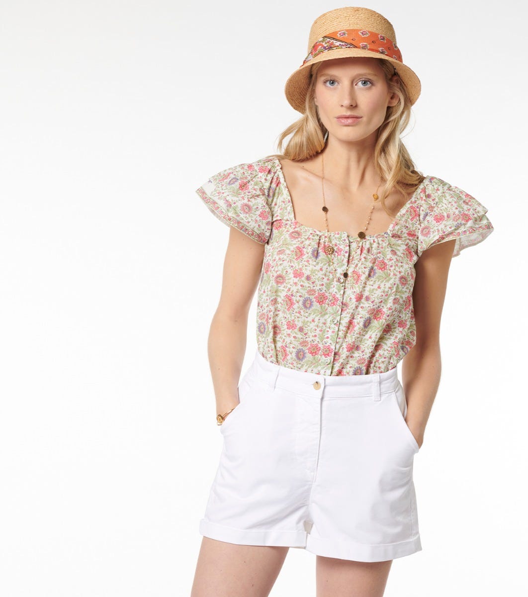 - Finishing of the waistband in frieze pattern Small Cassis almond pink
