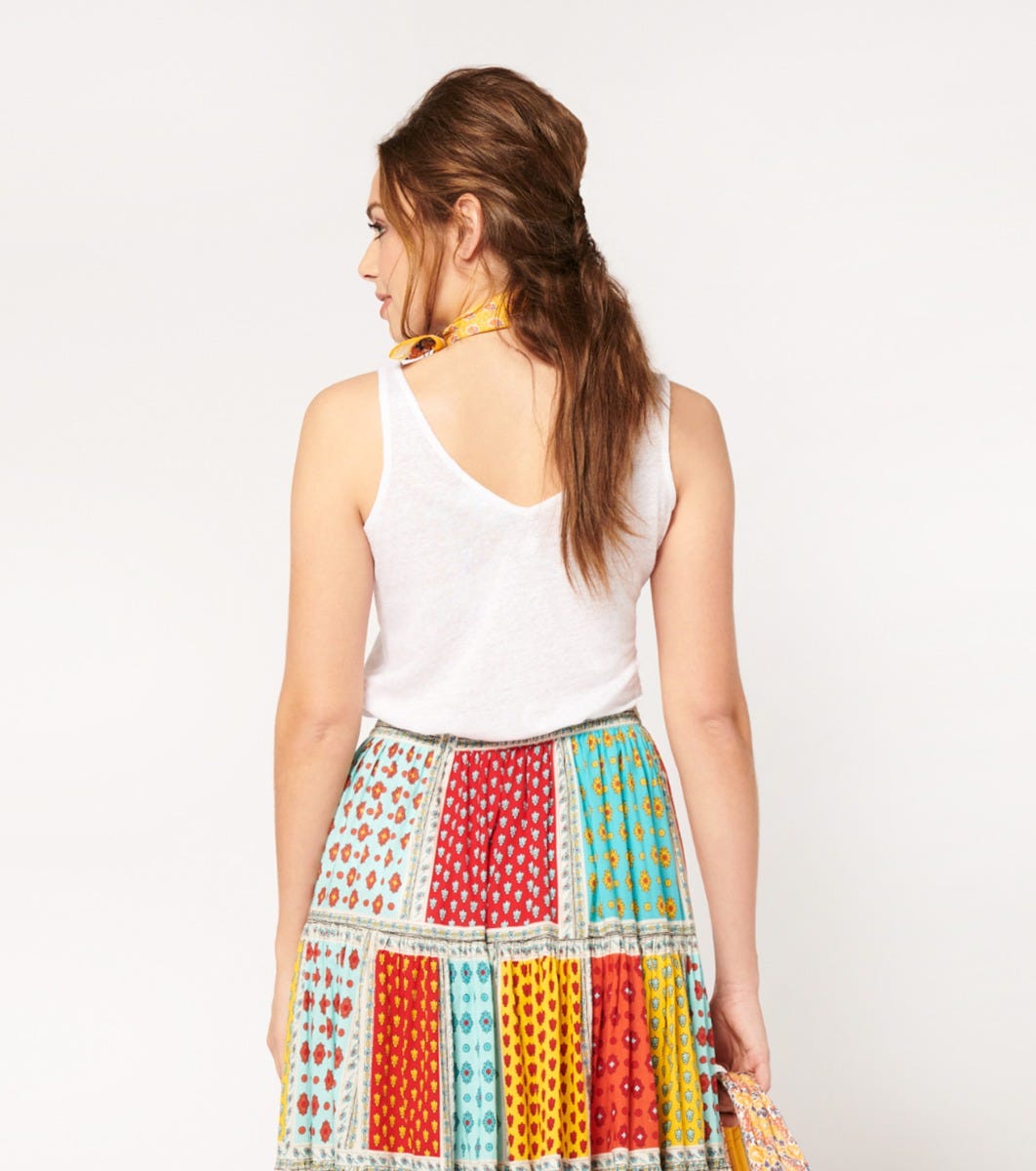 - Slightly fitted, plain linen tank top that combines comfort and femininity thanks to its scoop V-neckline front and back. Ideal for a modern, timeless look, it’s easy to wear every day.